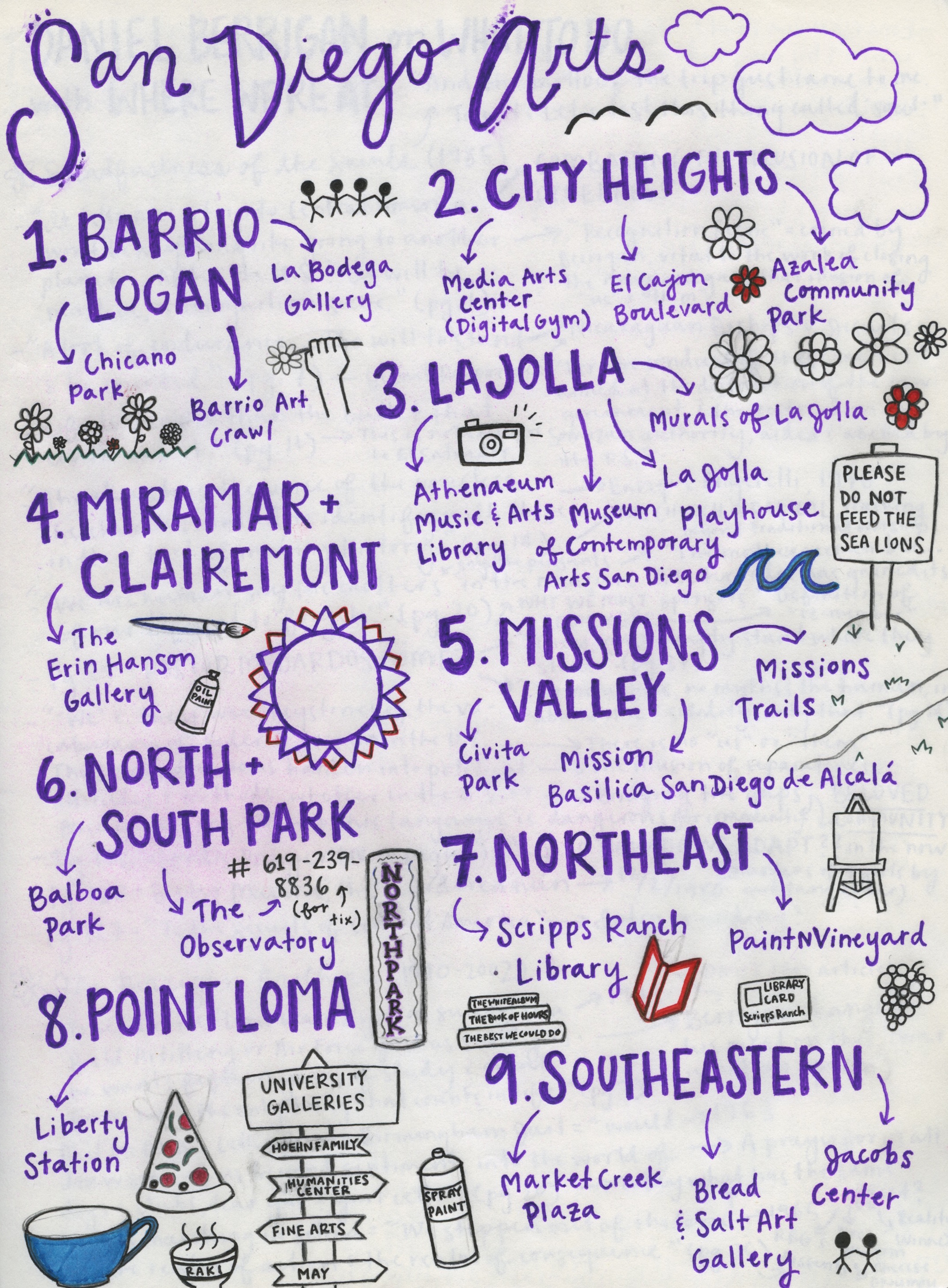 Today, the art scene flourishes throughout the region. Multifaceted forms of artistic demonstration are on display in galleries, parks, and venues. Akin to the material art in San Diego are the efforts of organizations advocating for the development of neighborhoods by way of civil engagement.
